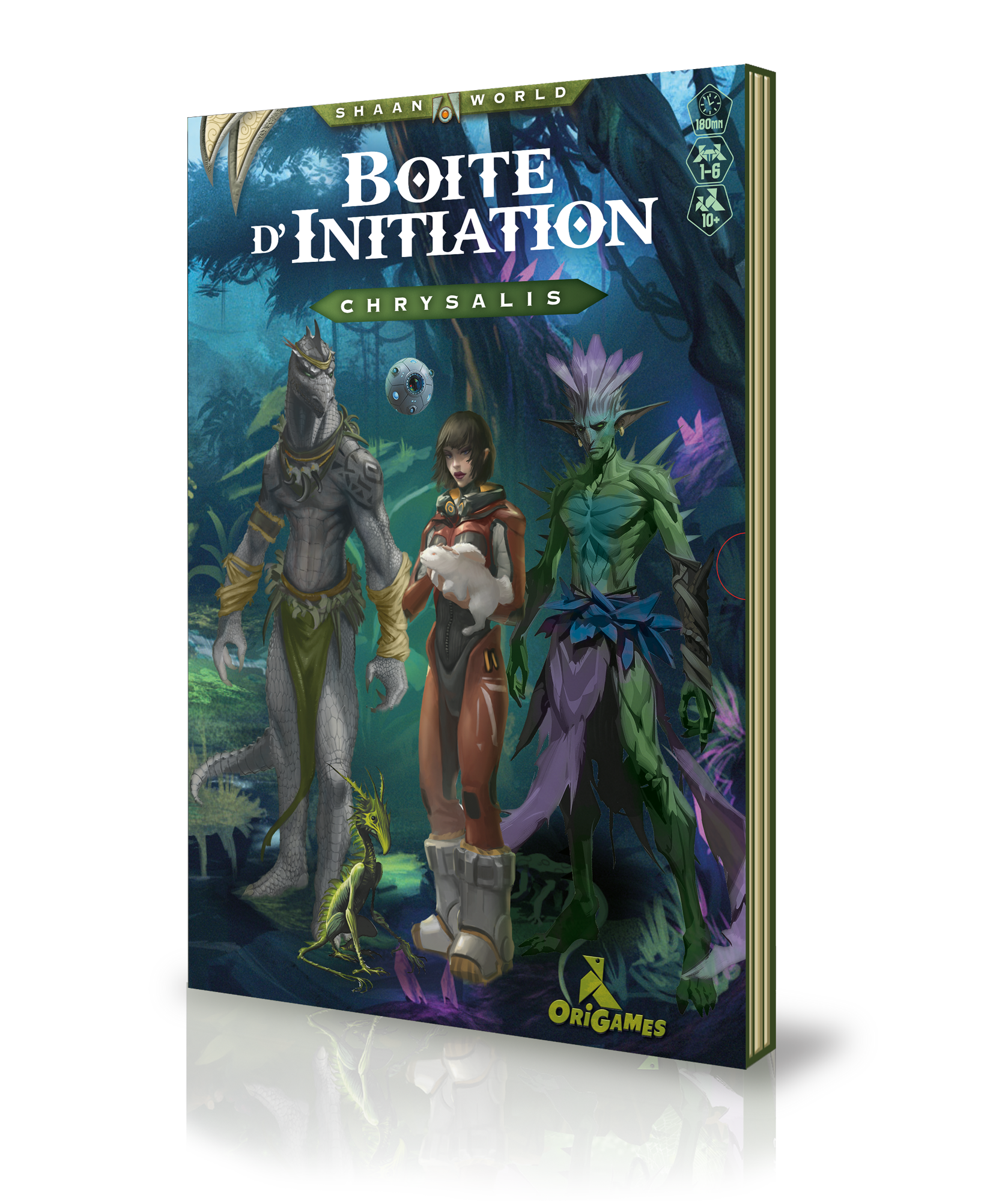 - un écran de jeu souple avec les lignées de Chrysalis au recto et un rappel des règles et des vocations au verso