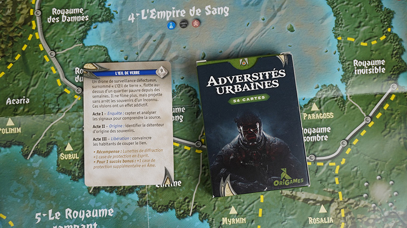 Ce Deck d’adversités urbaines complète le Deck d’adversités de voyage avec 54 cartes d’événements urbains pour animer pour visites des communautés qui vous aurez générées. Il vous permettra de tirer au hasard des adversités lorsque vous jouerez dans une communauté ou une grande ville de Chrysalis. Ces adversités disposent de secrets qui vous mèneront la vie dure, mais qui vous feront également découvrir l’univers de Chrysalis et vous donneront de belles récompenses.