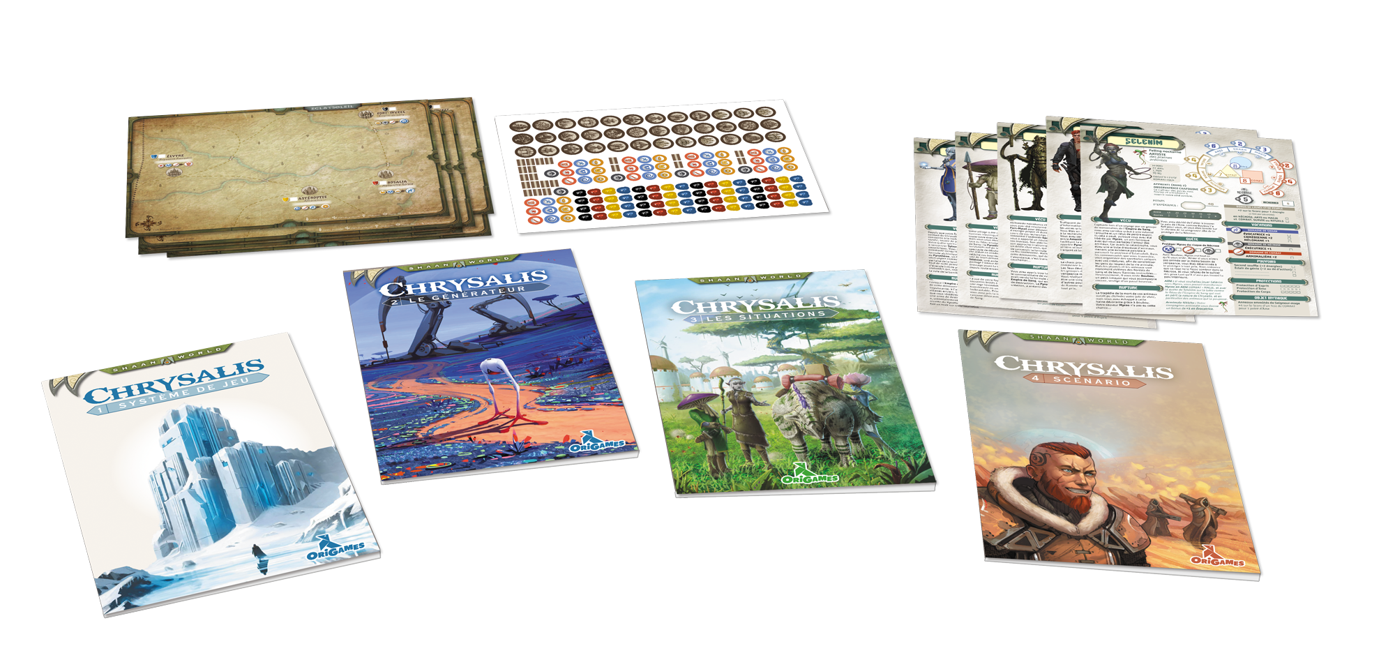 • Une Campagne à improviser : Lancez-vous immédiatement avec une campagne didactique, composée d’une « session 0 » pour personnaliser votre cadre de jeu et y intégrer des personnages prêts à jouer. Enchaînez avec un gros scénario qui pose les premiers jalons d’une campagne improvisée et immersive. Explorez les sept provinces de Chrysalis, chacune avec son ambiance unique.