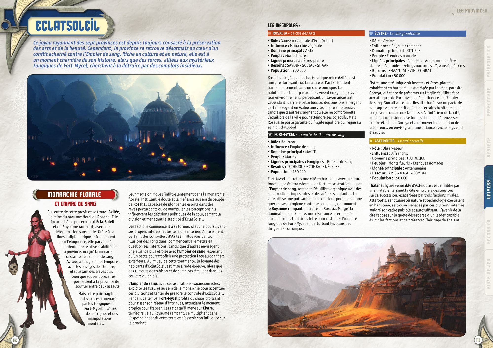 • la description des 5 lignées et 5 peuples jouables